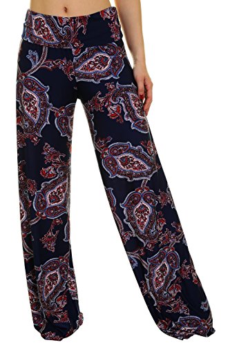 Uptown Apparel Womens Fold Over Waist Wide Leg Palazzo Pants Good Tall Curvy Girl -Ships from U.S.A