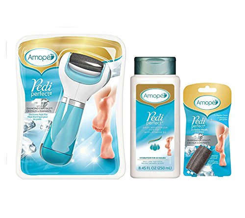 Amope Pedi Perfect Pedicure Tools Bundle- Includes 1 Regular Foot File, Two Refills, and 1 Daily Foot Cream- Great Gift for Men and Women