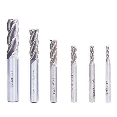 AUTOTOOLHOME 1/8" 3/16" 1/4" 5/16" 3/8" 1/2"high Speed Steel HSS 4 Flute Straight End Mill Cutter Set of 6