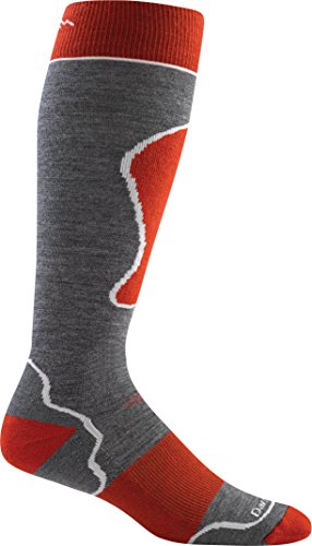 Darn Tough Merino Wool Alpine Ski Over-The-Calf Padded Ultralight Socks - Men's Gray/Red X-Large
