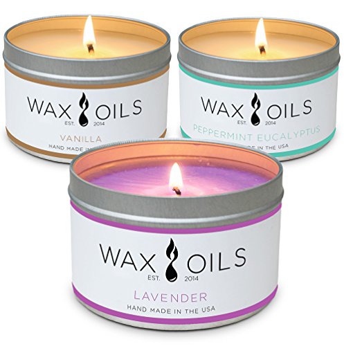 Wax and Oils Soy Wax Aromatherapy Scented Candles, Lavender, Vanilla & Peppermint Eucalyptus, 8 oz (Pack of 3)