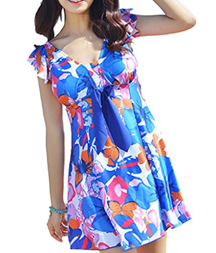 Geval Women's One Piece Slim Fit Floral Print swimsuits(Blue,S)