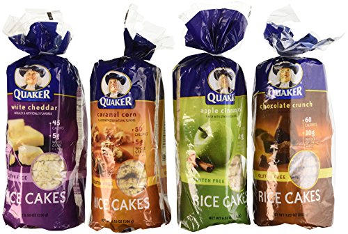 Quaker Rice Cakes Variety Bundle - Pack of 4 Flavors, Chocolate Crunch, Apple Cinnamon, Caramel Corn, White Cheddar