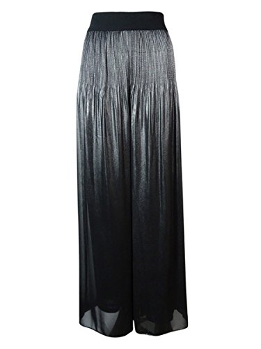 Alfani Women's Silver Foil Wide Leg Metallic Pleated Pants Petite Medium