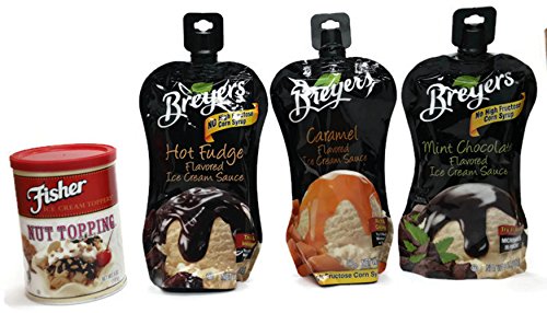 Breyers Ice Cream Sauce, Mint Chocolate, Hot Fudge & Caramel Flavored 8 oz, Fisher Nut Topping (Variety Pack of 4)