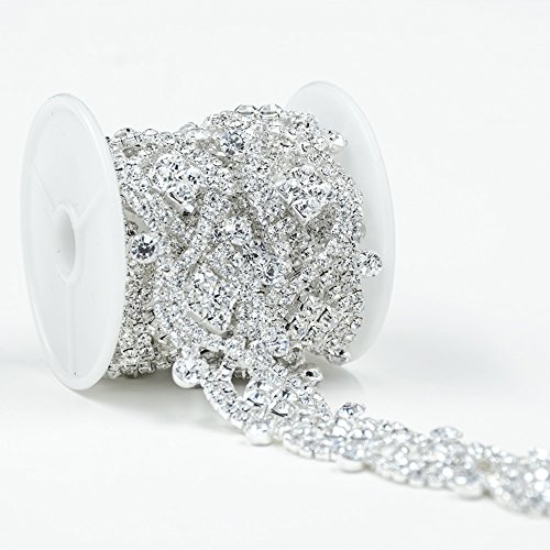 Seasofbeauty Crystal Rhinestone Luxury Costume Chain Applique Flower Trims 1yds Clear Silver