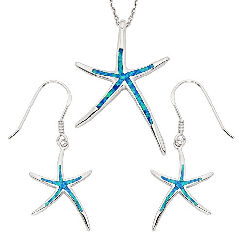 Sterling Silver Created Opal Starfish Earrings and Pendant Set with 18" Chain