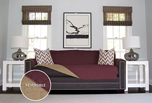Sofa Shield Reversible Furniture Protector with Elastic Strap, Extra-Wide, Burgundy/Tan