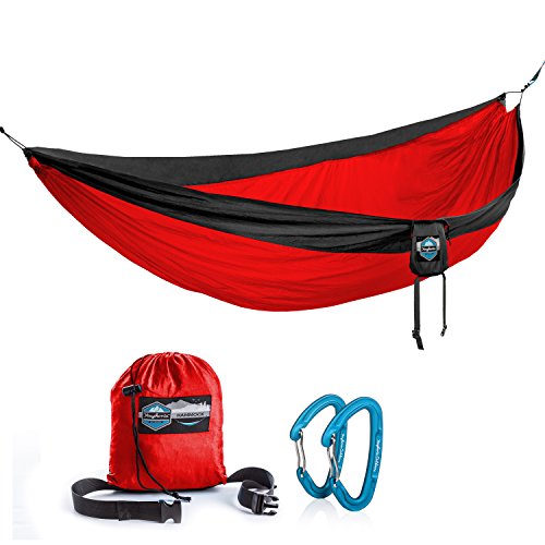 Double Parachute Camping Hammock by Youphoria Outdoors - Lightweight Nylon Compression Travel Hammock with Premium Wiregate Aluminum Carabiners - Straps Not Included