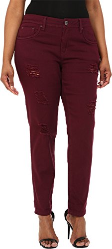 dollhouse Women's Plus Size Sangria Destructed Full Length Skinny Jeans w/Roll Cuff, Burgundy, 22 X 30
