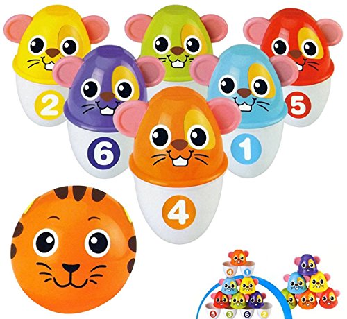 Kids Mix & Match Cartoon Bowling & Stacking Cup Toy Game with 6 Pins and Ball for Children, Toddlers