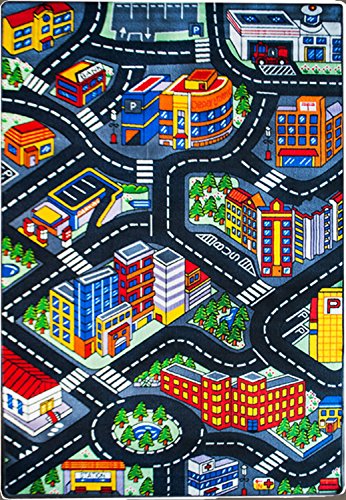 Kids Rug 3D City Map 5' X 7' Childrens Area - Street Map Non Skid Gel Backing (59" x 82")