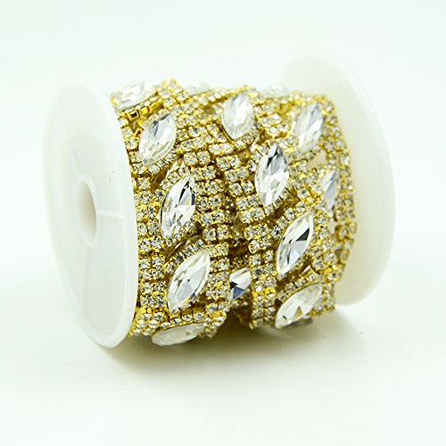 Seasofbeauty Charm Glass Rhinestone Brass Gold Tone Trim Wedding Party Dress Applique 1 Yard