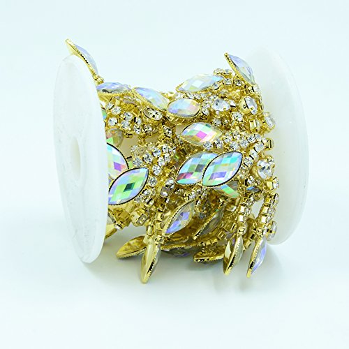 Seasofbeauty AB Resin Crystal Clear Glass Rhinestone Bridal Trim Fashion Chain 1 Yards Gold