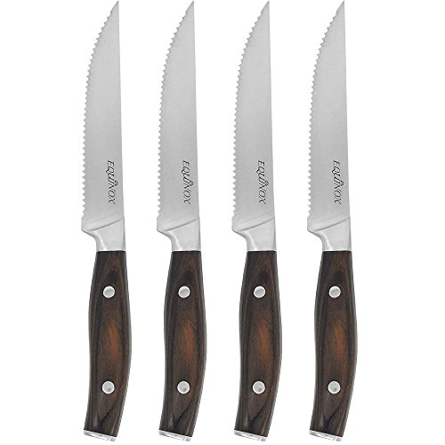 Equinox 4-Piece Steak Knife Set, Serrated Edge Steak Knives, Dark Wood