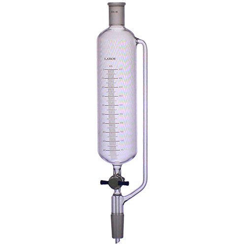 Laboy HMF031813 Glass 500 mL Addition Graduated Pressure Equalizing Dropping Funnel/Lines W/ 24/40 Joint at Top and 2 mm PTFE Stopcock