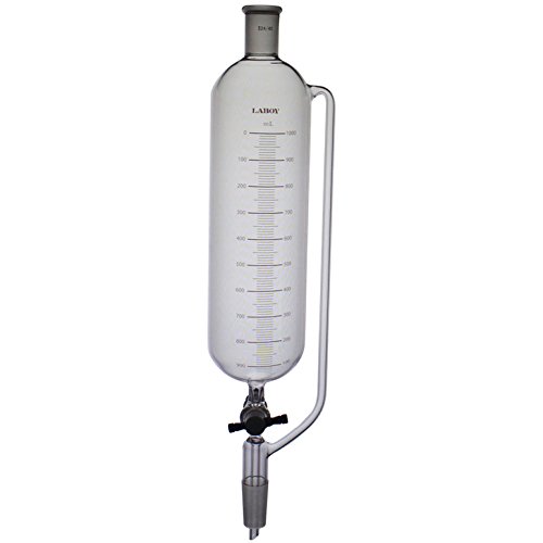 Laboy HMF031815 Glass 1000 mL Addition Graduated Pressure Equalizing Dropping Funnel/Lines W/ 24/40 Joint at Top and 2 mm PTFE Stopcock