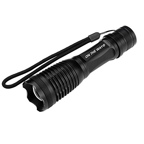 On The Way 900 Lumen Expedition Handheld Flashlight LED With Battery Charger, 18650 2800mAh Rechargeable Battery and Sleeve, AAA Battery Holder