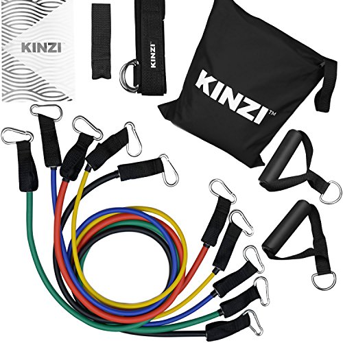 Kinzi Resistance Band Set with Door Anchor, Ankle Strap, Exercise Chart & Resistance Band Carrying Case