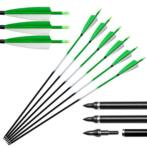 ARCHERY SHARLY 31" Feather Carbon Practice Arrows Feather Fletching with 5" Natural Vanes Removable Tips for Recurve Traditional Long Bow Hunting