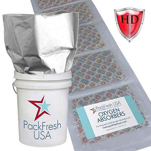 5 Gallon Heavy Duty Mylar bags with 2000cc oxygen absorbers Individually Sealed (6) with PackFreshUSA LTFS Guide