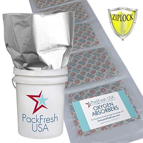 5 Gallon HD Ziplock Mylar bags with 2000cc Oxygen Absorbers Individually Sealed (6) with PackFreshUSA LTFS Guide