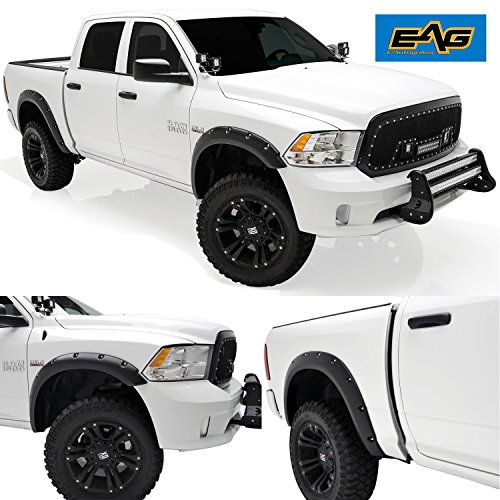 EAG E-Autogrilles Black Pocket Rivet Style Front + Rear Fender Flares for 09-15 Dodge Ram 1500 (20291)