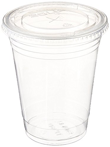 Stack Man 100 Sets 16 oz. Plastic Clear Cups with Flat Lids for Iced Coffee Bubble Boba Tea Smoothie