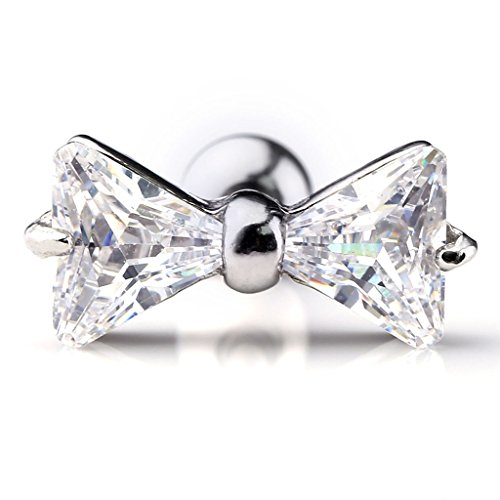 PiercingJ 2-3pcs 16G 1/4" Stainless Steel 6MM Cubic Zirconia Bowknot Barbell helix Cartilage Tragus Ear Lobe Stud Earring