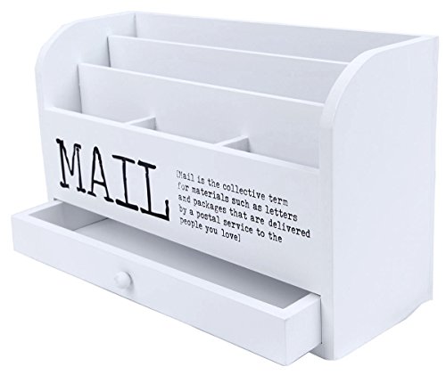 Juvale 3 Tier Wooden Mail Desktop Organizer & Sorter with Storage Drawer - for Office and Home - Keep Mail, Letters, Files, Office Supplies Neat & Organized - White - 11 Inches.