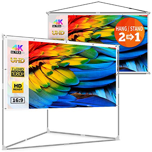 JaeilPLM 100-Inch 2-in-1 Portable Projector Screen, Outdoor Indoor Compatible with Triangle Stand or Hanging Design Movie Projection for Home Theater, Gaming, Office