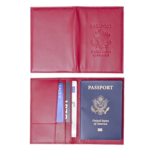 Genuine Leather USA Great Seal Passport Wallet, Case, Holder, Cover (Rusty Red)