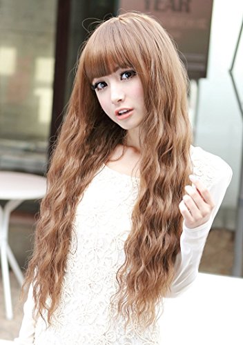Mecawig New Fashion Fluffy Healthy Long Curly Kanekalon Full Wig As Real Hair Brown AQ161