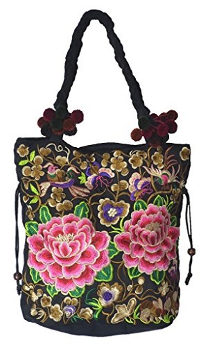 Tote Handbag Retro Boho Bohemia Ethnic Shoulder Thai Bag Embroidered Flowers Tub 648