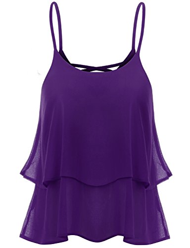 TWINTH Women Sexy Bilayer Chiffon Loose Vest Shirt Top Purple XL