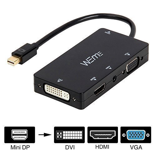 WEme 4-in-1 Mini DisplayPort (Compatible Thunderbolt) to HDMI/DVI/VGA Adapter Cable with Audio Output, Male to Female Converter for Apple MacBook Air Pro, Microsoft Surface Pro, Surface Book, Black