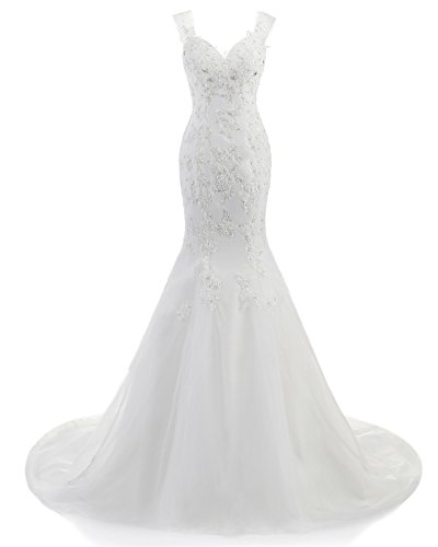 Abaowedding Women's Lace Mermaid Wedding Dress Beaded Bridal Gowns Sweep Train Ivory US 2