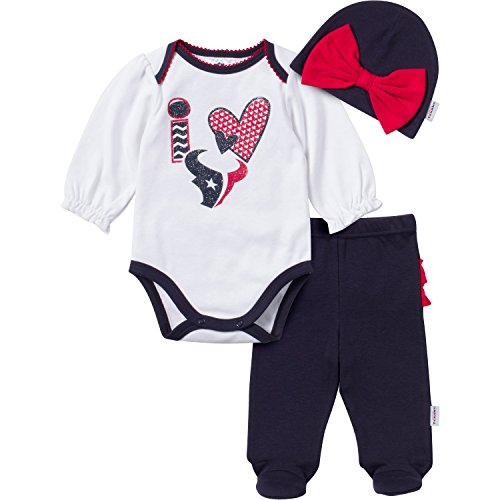 GERBER NFL Houston Texans Baby Girl Bodysuit, Footed Pant and Cap Set