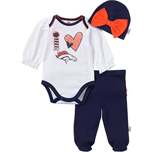 GERBER NFL Denver Broncos Baby Girl Bodysuit, Footed Pant and Cap Set