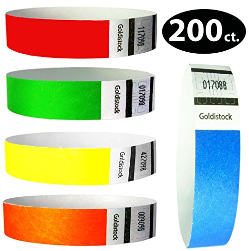Tyvek Wristbands – Goldistock 200 Count Rainbow Variety Pack – ¾” Arm Bands - 40 Each: Neon Green, Blue, Red, Yellow & Orange Paper-Like Party Armbands - Heavier Tyvek Wrist Bands = Superior Events