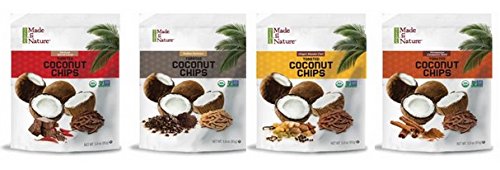 Made in Nature Organic Toasted Coconut Chip Variety Pack - Vietnamese Cinnamon Swirl (3-oz.), Italian Espresso (3-oz.), Mexican Spiced Cacao (3-oz.), Ginger Masala Chai (3-oz.)
