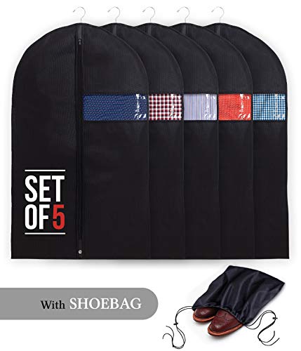 Garment Bags with Shoe Bag - Breathable Garment Bag Covers Set of 5 for Suit Carriers, Dresses, Linens, Storage or Travel - Suit Bag with Clear Window