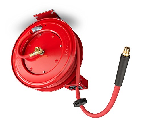TEKTON 50-Foot x 1/2-Inch I.D. Auto Rewind Air Hose Reel with USA-Made Rubber Air Hose (250 PSI) | 46848