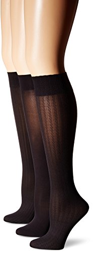 HUE Womens Cable/Rib/Opaque Knee High 3-Pack