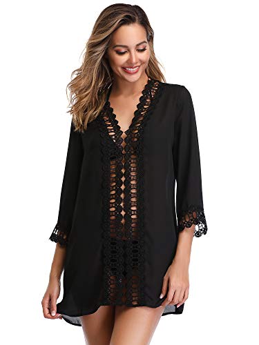 MiYang Women's Floral Lace Beach Bikini Swimwear Cover-up Black XS(US Size 0-2)