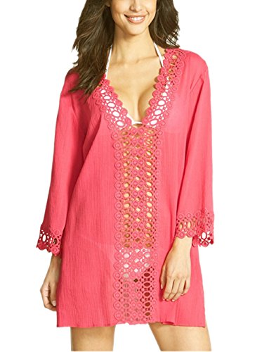 MiYang Women's Floral Lace Beach Bikini Swimwear Cover-up, Red, X-Small(US Size 0-4)