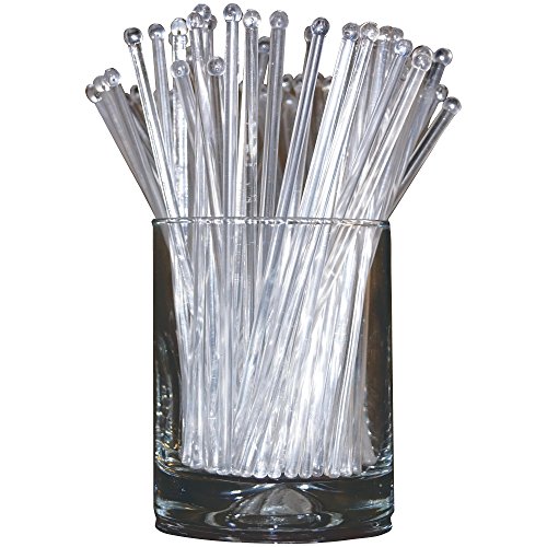 Royer 6 Inch Plastic Round Top Swizzle Sticks, Set of 48, Crystal - Made In USA