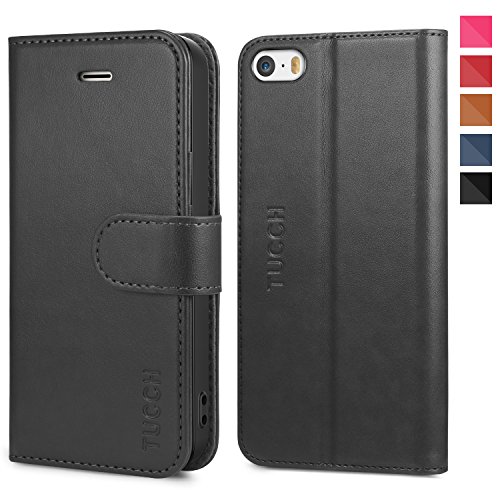 iPhone SE Case, iPhone 5s Case, TUCCH Wallet Case for iPhone SE / iPhone 5s / iPhone 5, Flip Leather Wallet Cases Slim Folio Book Cover with Credit Card Slots, Cash Clip, Stand Holder, Magnetic Closure, Black