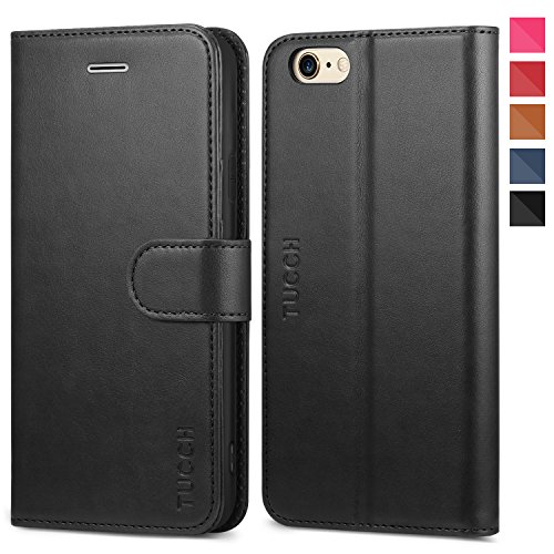 iPhone 6s Case, iPhone 6 Wallet Case, TUCCH Premium PU Leather Flip Folio Card Slot, Stand Holder, Magnetic Closure, [TPU Shockproof Interior Protective Case] Compatible iPhone 6s/6, Black