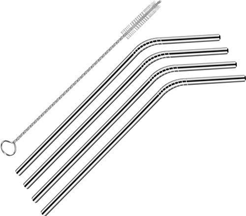 Utopia Kitchen Single Piece Stainless Steel Bent Straw 8.5-Inches Long with Brush - Pack of 4